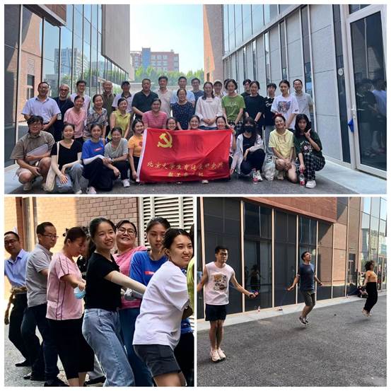 值此党的二十大、 北大医学办学110周年之际,为贯彻实行好公司的教学工作计划,开展丰富多彩的校园文化活动,以响应健康中国战略的号召。营养系教职工在教师节期间,开展了益智健身----跳绳活动,强身健体,以弘扬爱岗敬业精神,守好三尺讲台,将师德师风建设贯穿始终。由于疫情,部分在外阜做科研的老师们没有及时赶回参加,系里在校的老师们都积极参加了活动。