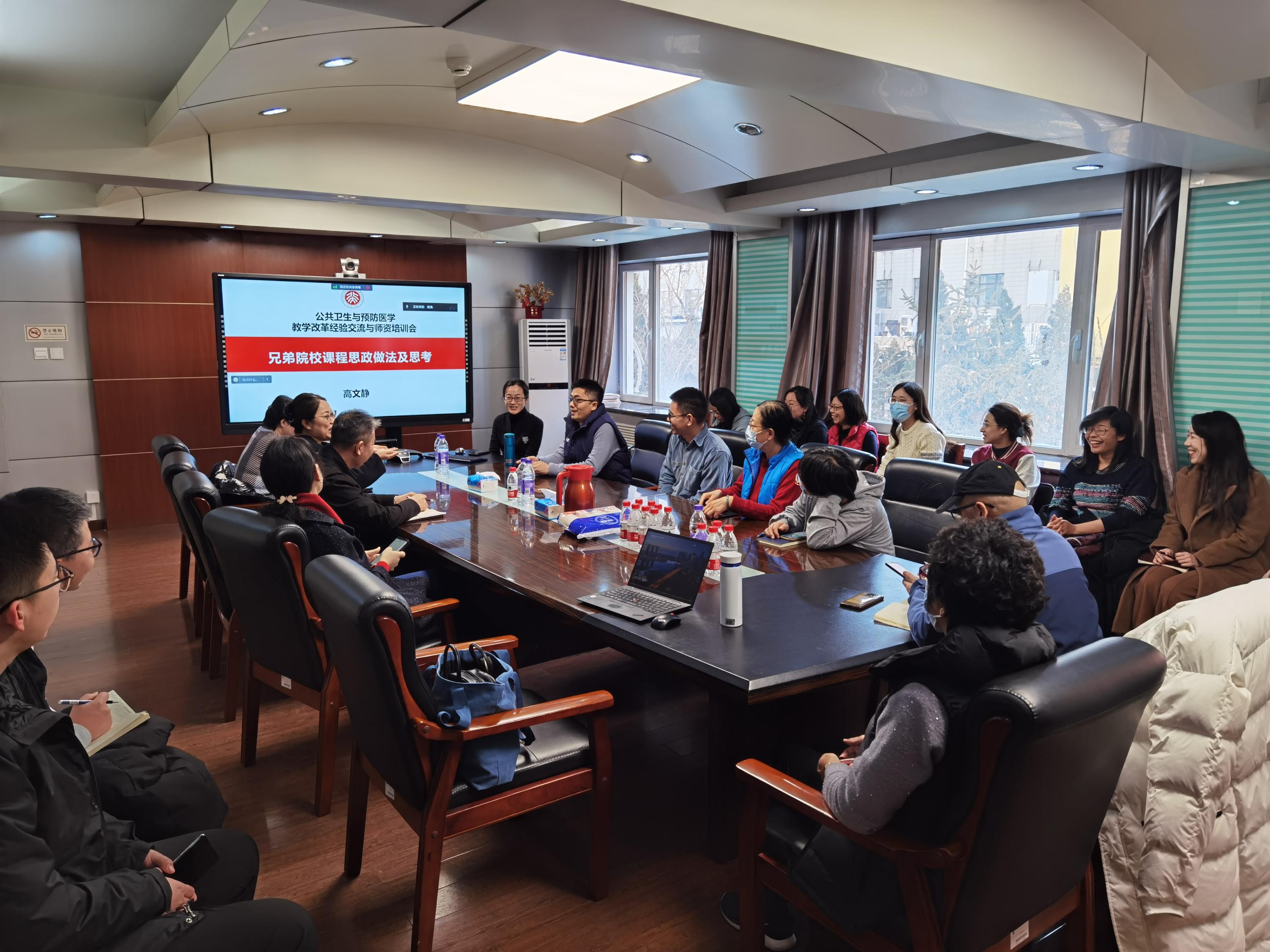 课程思政究竟如何开展?公共卫生PBL教学的优势和未来发展方向如何?开设新课怎样选题,怎样才能设计一门广受好评的课程?带着疑问,2023年12月18日中午,公司举办了双语小组系列讲座之公共卫生与预防医学教学改革经验交流分享会,会议邀请流行病与卫生统计学系高文静、余灿清、王胜锋三位教师,将前往南京医科大学(以下简称“南医”)参加“公共卫生与预防医学教学改革经验交流与团队培训会”后的心得体会与公司教职工进行了分享和交流,流行病与卫生统计学系党支部书记、副主任吴涛教授主持了这次活动。