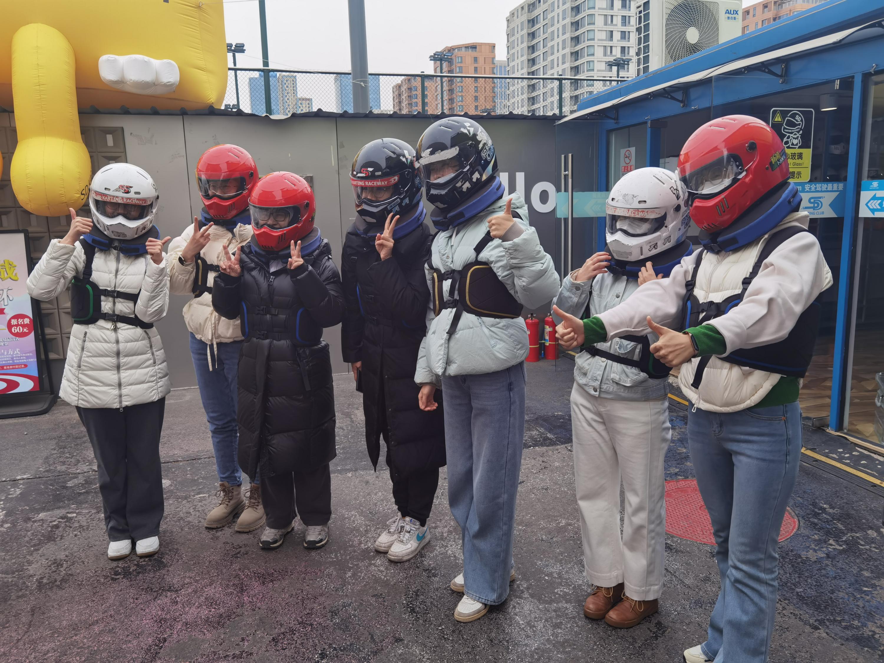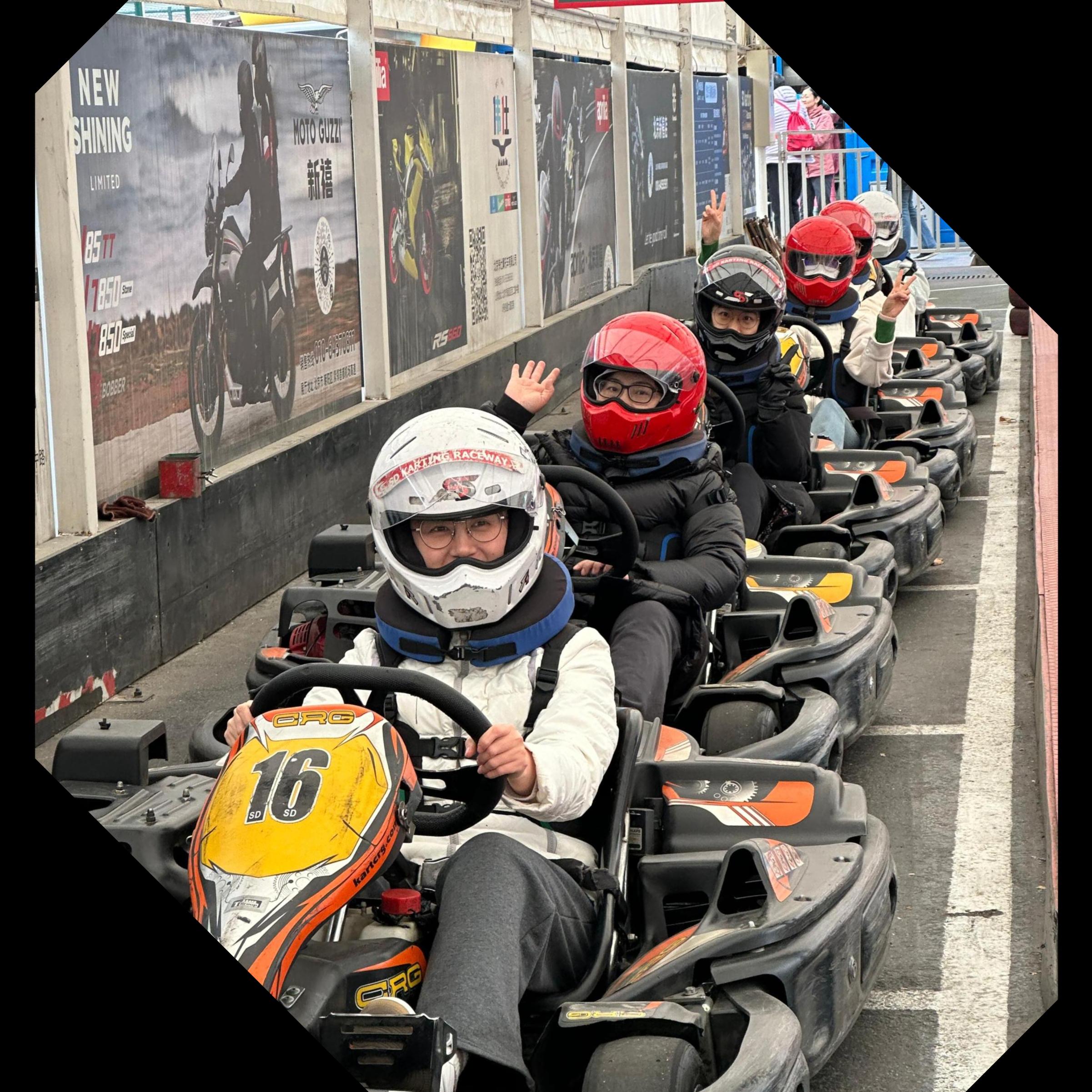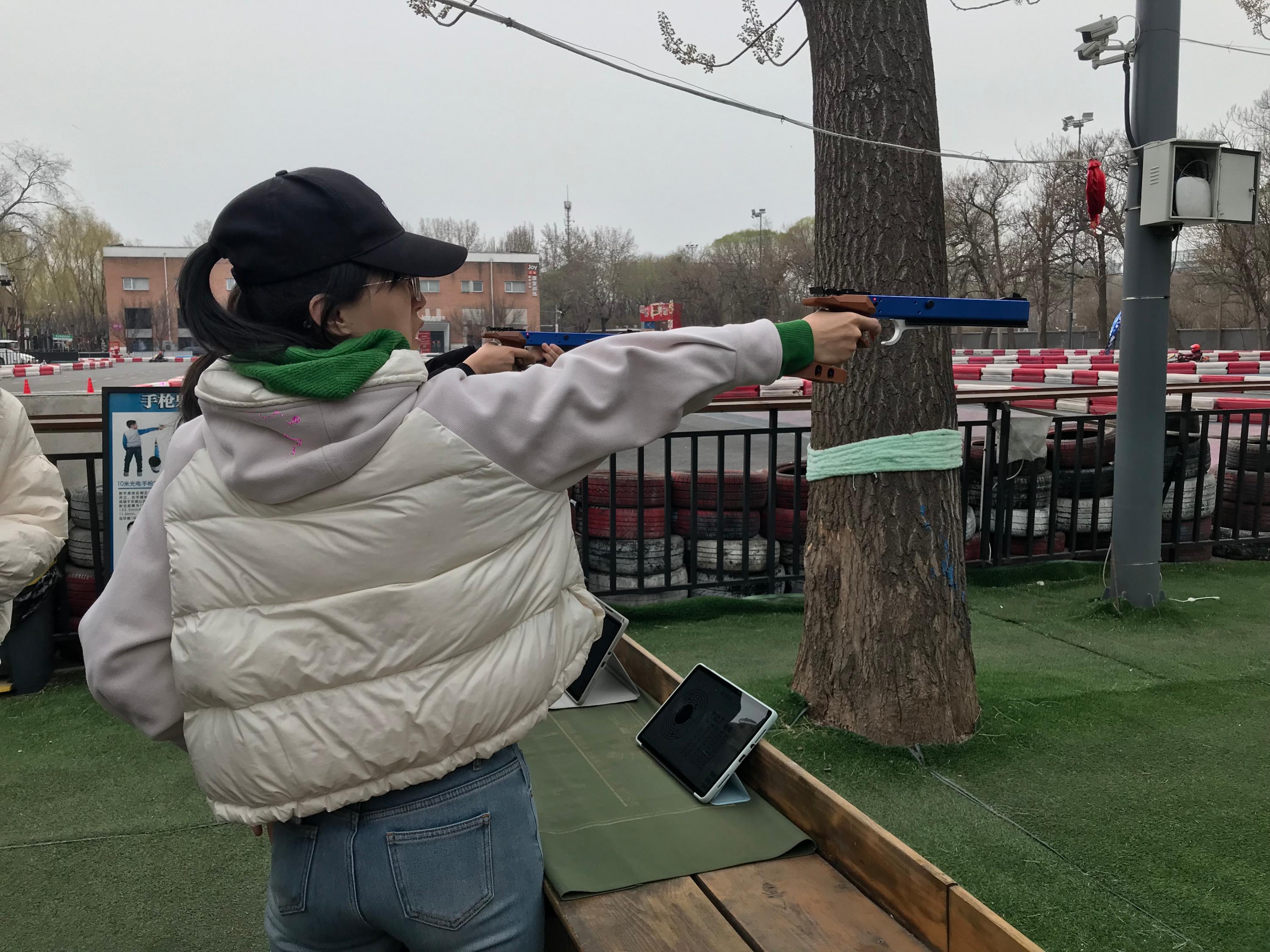卡丁车运动于1940年在东欧开始出现,20世纪50年代末在欧美普及并迅速发展。结构简单、易于驾驶、兼具安全性和刺激性的特点,风靡世界。射击运动最早起源于狩猎和军事活动,是人类进入热兵器时代新增的体育运动。两种运动形式,一动一静,均体现出体育运动竞技之美,让教职工在紧张繁忙的工作之余,能够享受片刻欢愉。静坐办公桌前埋头科研、教学的中青年女教职工们,经过专业教练培训,带上头盔、护具、驾驶专业卡丁车,也有“专业”的模样;学习好射击动作,或叉腰侧身站立持枪,或双手持枪正对靶向,英姿飒爽,女英雄不逊好儿郎。身旁难得的几位男士,作为服务人员,全程为老师们摄影录像。