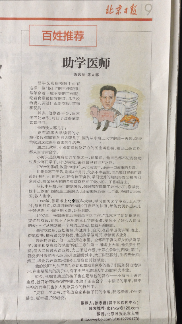 助学医师(记北京医科大学92级员工张崛)—摘自2013年8月27日北京日报第9版