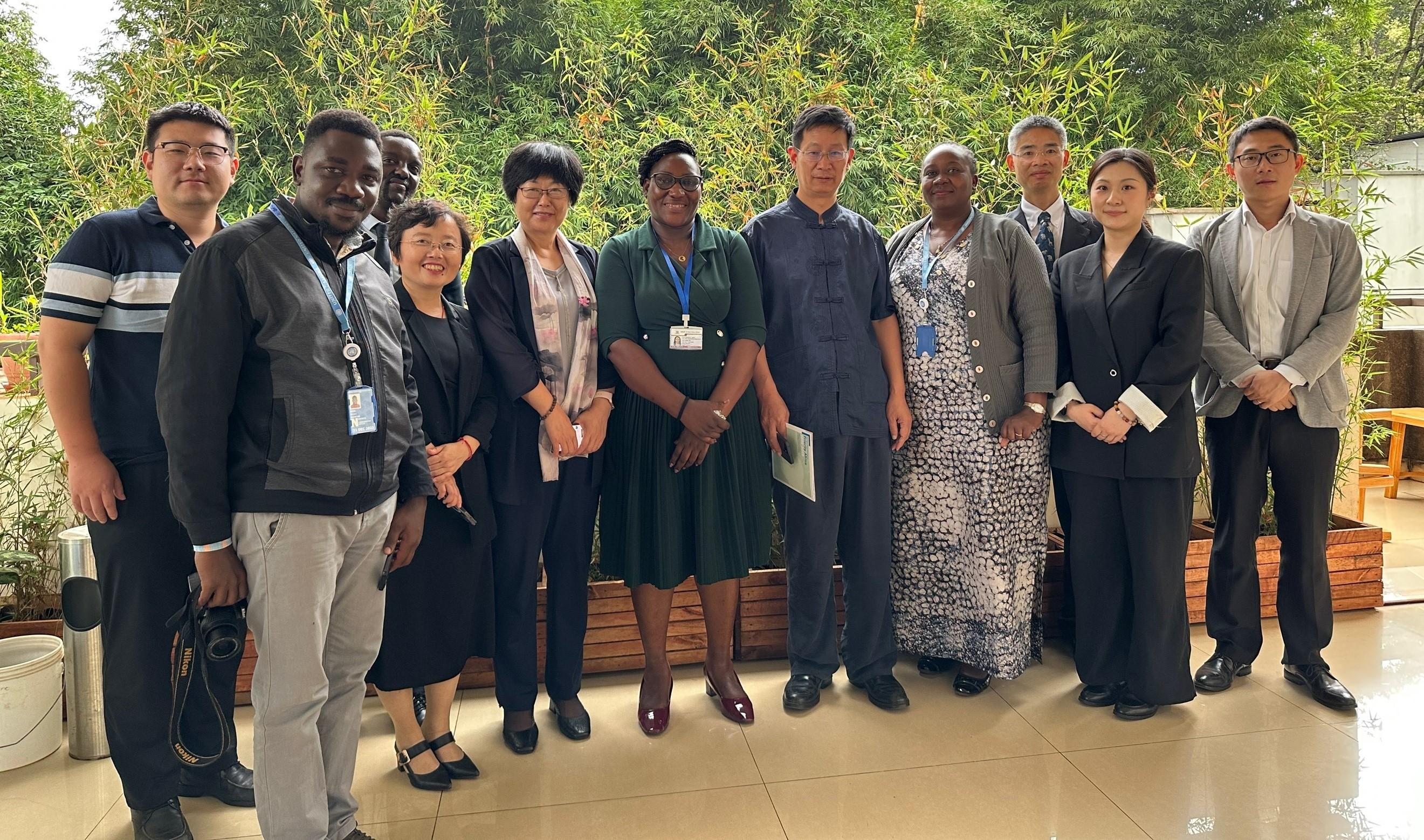 出访团与中国驻乌干达大使张利忠(右五)